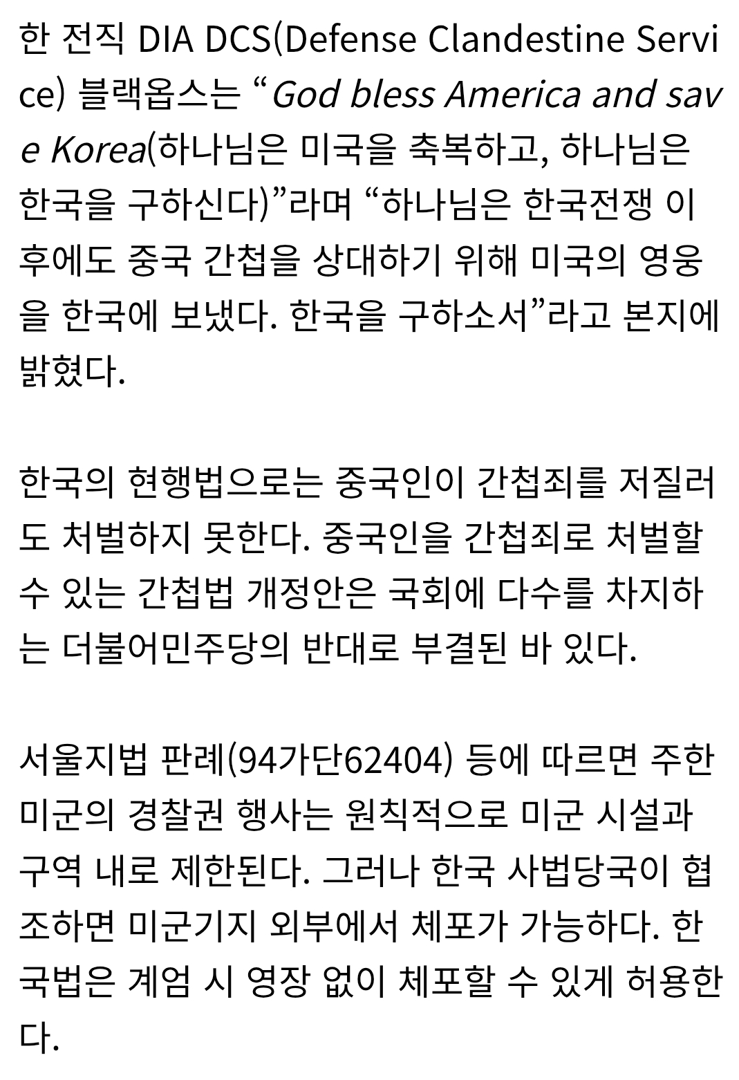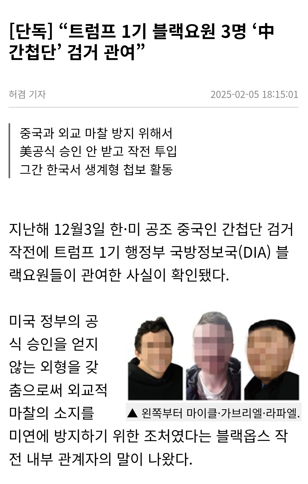미 블랙요원들, 중국 간첩단 검거에 참여