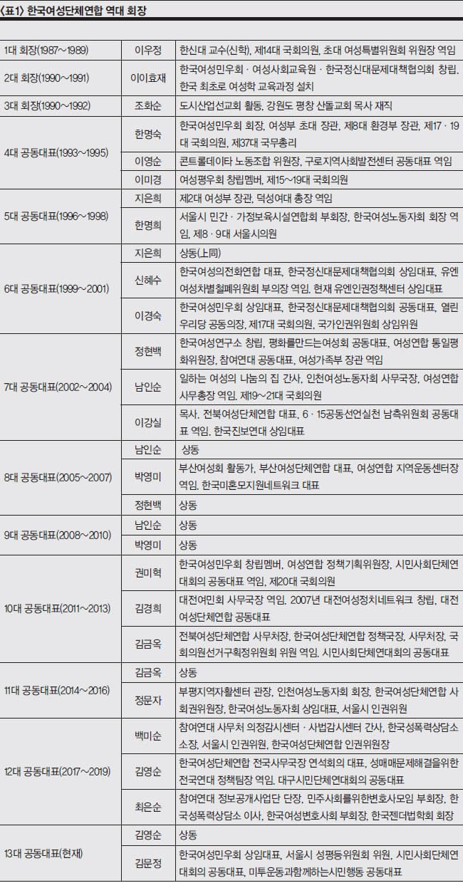 진보 세력 여성계, 한국여성단체연합-이화여대에 집중된 인맥으로 영향력 확대