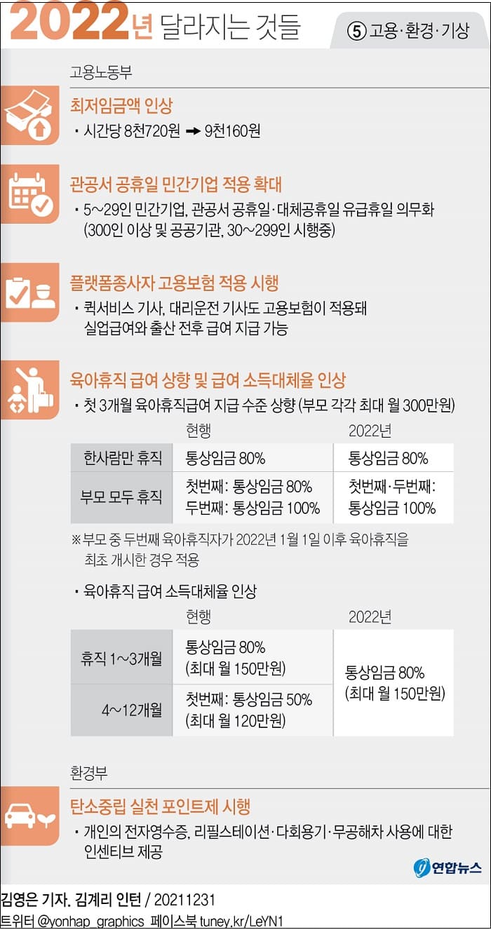 [2022년 달라지는 것들] ④보건·복지 ⑤고용·환경·기상 ⑥산업·중기·에너지