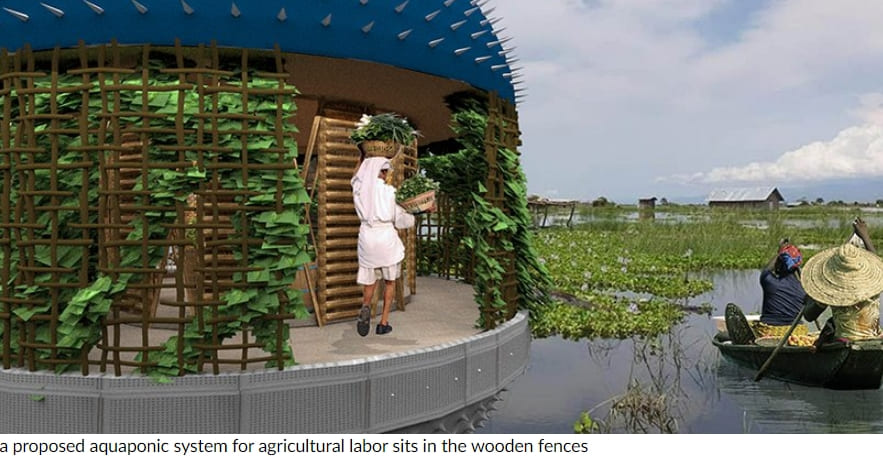 아프리카 베냉에 있는 Ganvie 호수 마을은 해수면이 높아서 사람들이 물에 떠다니는 나무 집을 짓도록 강요받는다. 형편없이 지어지는 이 집들은 시간이 지남에 따라 낡고 파괴되어 결국 마을 사람들의 삶을 위협한다. 이 문제에 비추어, 이란의 건축가 sajjad navidi는 해수면 상승에 적응하는 스마트 하우스 시스템이라는 그의 '더 작은 마을' 제안을 밝혔다. 그 이름이 암시하듯이, 이 프로젝트는 Ganvie의 호수 nakoué에서 흔히 볼 수 있는 복어의 해부학적 구조를 활용하고 있다. 복어는 포식자를 쫓거나 도망치기 위해 물이나 공기로 가득 찬 풍선처럼 부풀어 오르는 것으로 알려져 있다.