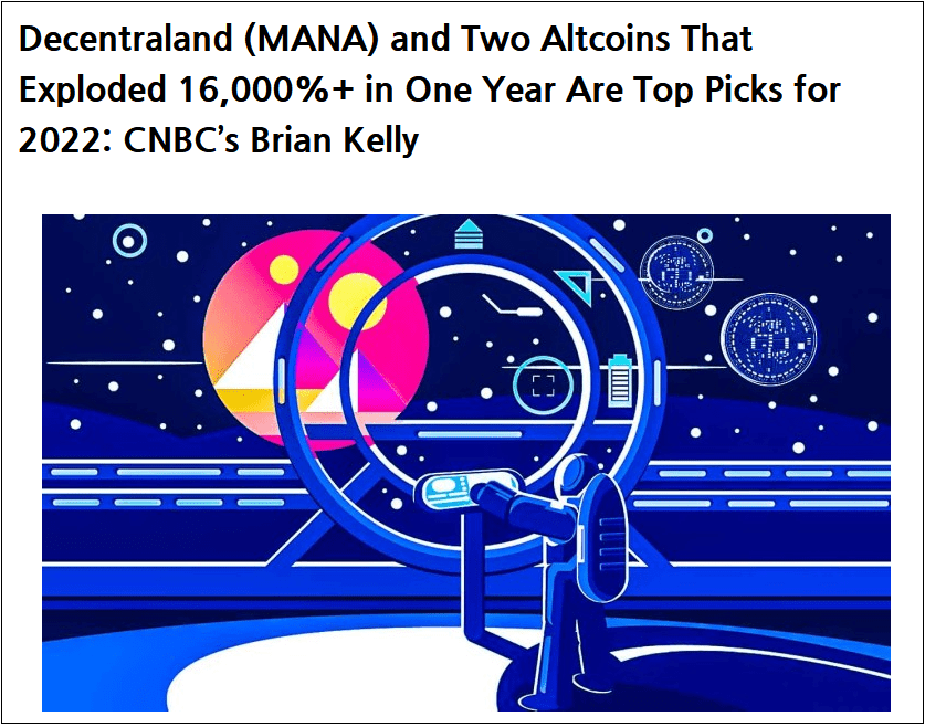 CNBC 기고자 겸 디지털통화투자사 BKCM의 CEO인 브라이언 켈리가 2022년 잠재력이 높다고 판단되는 메타버스 알트코인 3종을 지명했다.
