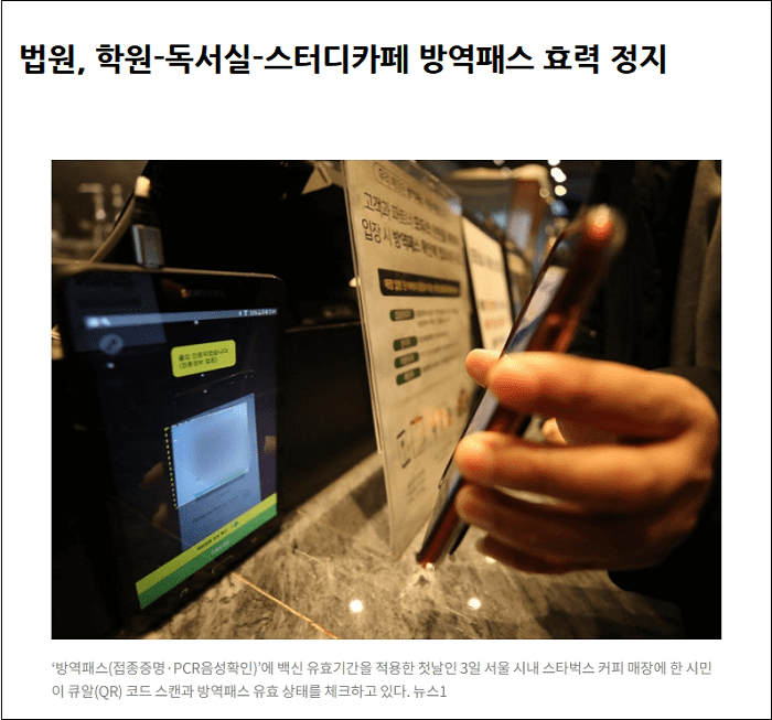 법원이 학원과 독서실 등을 대상으로 하는 정부의 방역패스 정책 적용에 제동을 걸었다.