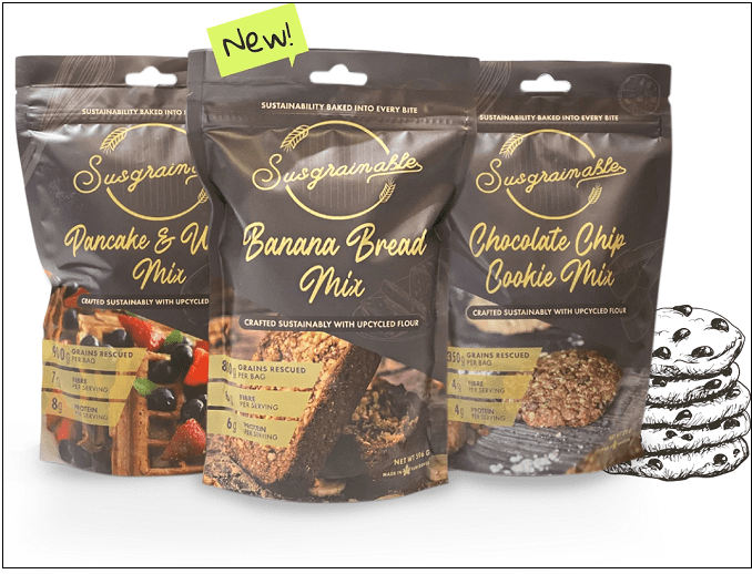 <Susgrainable Health Foods Inc의 양조장 폐기물로 업사이클링 한 베이킹 믹스 제품>