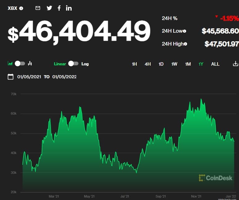 비트코인은 12월 초 급락한 뒤 상승세를 이어가며 4만6073달러 선에 거래됐다. 11월에는 6만9000달러로 사상 최고치를 기록했다.