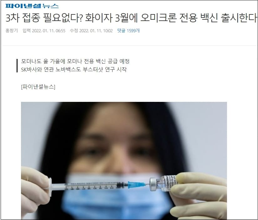 이렇게 논란이 되고 있는 방역패스를 앞으로도 어느 수준까지 적용할지, 또 거리두기는 어떻게 할지 결정할 주요한 변수는 지금 빠르게 퍼지고 있는 오미크론 변이를 우리가 얼마나 통제할 수 있느냐에 달려 있습니다. 이런 가운데, 화이자와 모더나 등 대형 제약사들이 오미크론 변이용 백신 개발에 속도를 내고 있다는 소식이 지난 밤사이에 들어왔습니다. 화이자는 3월이면 새 백신이 나올 거라고 밝혔습니다.