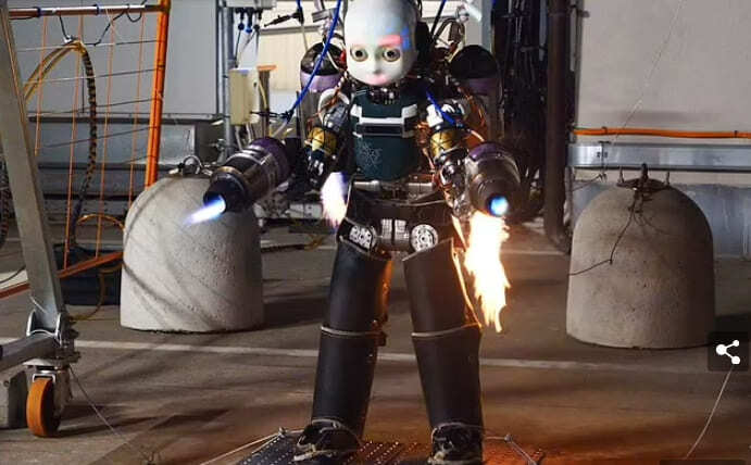 아이언맨 스타일의 로봇은 잔해 속을 수색하고 추진 배낭을 사용하여 어려운 지형 위를 비행함으로써 자연 재해 발생 시 도움을 주도록 설계되었다.
