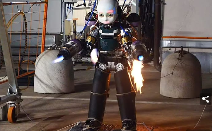Simulation of 'Iron Man' robot using propulsion backpack to fly