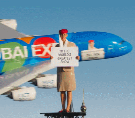 에미레이트 항공은 2020 엑스포를 홍보하는 828m 부르즈 칼리파 꼭대기에서 또 다른 놀라운 광고를 제작했다.