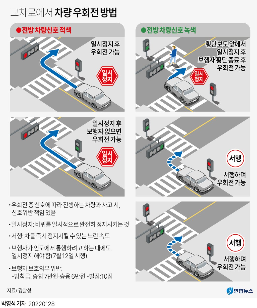 교차로에서 차량 우회전 방법...사실 잘 안지켜진다는...