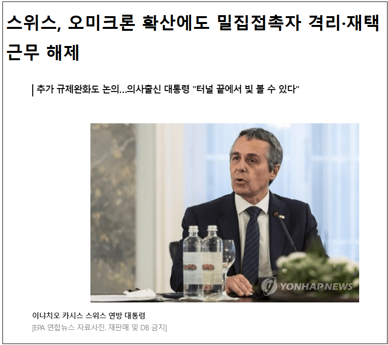 ![[전세계는 코로나 종식 붐] 스위스도 방역 규제 폐지 결정 VIDEO:Swiss ease Covid-19 curbs and plan gradual phase-ou](https://blog.kakaocdn.net/dna/cGPqIF/btrsnnNUiaC/AAAAAAAAAAAAAAAAAAAAAD3aFUkEgECtcEyxyC_rOVZ3oBW0cUf0uY6G3q2fw36J/img.png?credential=yqXZFxpELC7KVnFOS48ylbz2pIh7yKj8&expires=1769871599&allow_ip=&allow_referer=&signature=RGQI2rD8T28su4AloaRfYdxvHgM%3D)