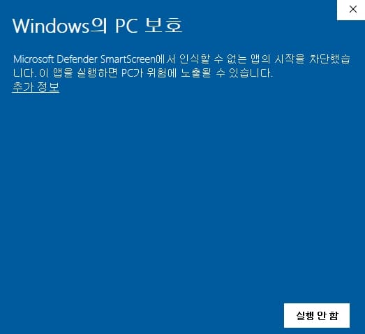 (실행 시 추가정보를 클릭하면 두번째 화면이 뜹니다)