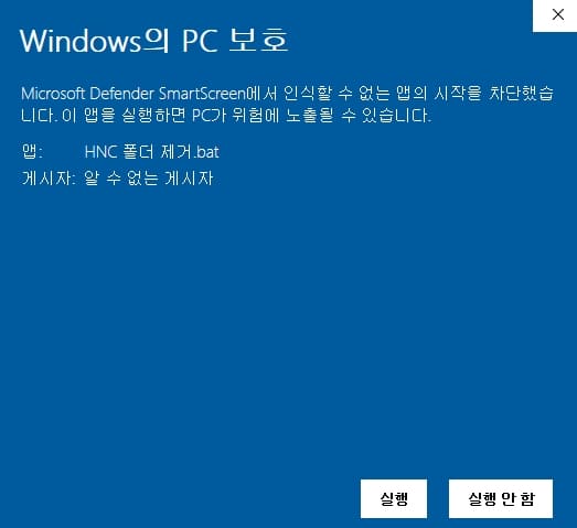 *윈도우 방화벽때문에 파일 실행이 차단되므로 첨부 파일을 실행해 주세요