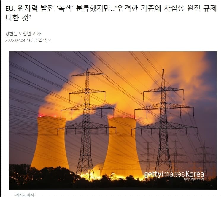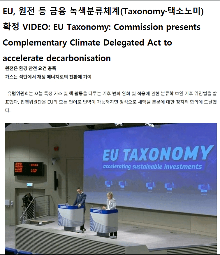EU의 원전 녹색분류 선언에 여전히 탈원전 선동질