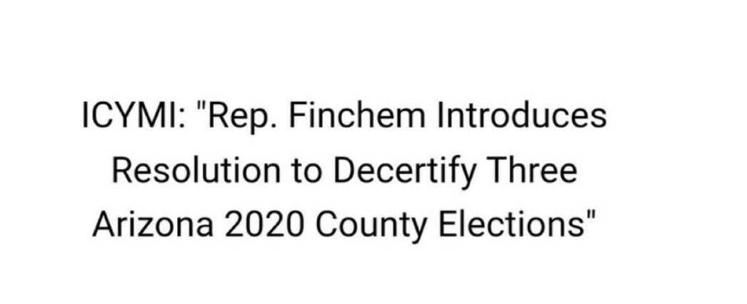아리조나의 마크 핀쳄 하원의원, 마리코파, 유마, 피마 세 카운티의 선거 결과 인증 취소 결의안을 냄