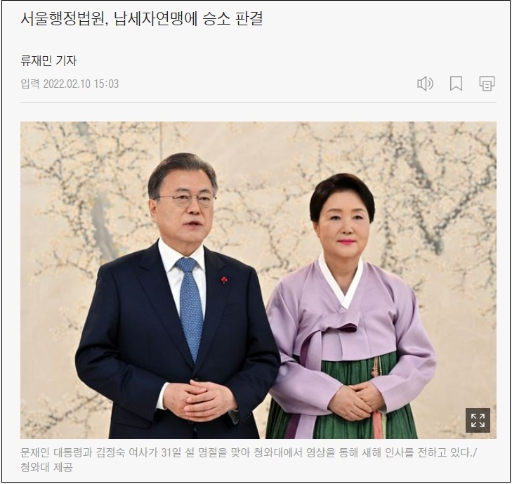 납세자연맹, 대통령 비서실장 상대 소송 승소..."청와대 특수활동비 김정숙 의전 비용 등 공개해야"