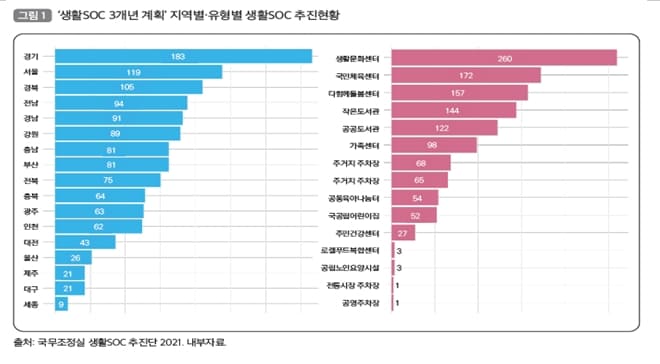 정부는 생활SOC사업의 3대 분야(여가활력,생애돌봄,안전안심)를 선정하여 서비스 수요인구, 시설접근성 등의 기준에 따라 우선적으로 생활SOC를 확충