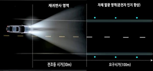 현재 조명이 없는 구간에서 운전자가 전방 위치를 확인할 수 있는 유일한 수단은 전조등과 차선임에도 불구하고 전조등의 조사 길이 한계로 차선의 인지성능이 운전자의 주행 안전성을 확보할 수 있는 가장 중요한 수단이다. 때문에 이에 대한 구체적이고 현실적인 연구와 실용화 기술개발이 시급한 상황이다.