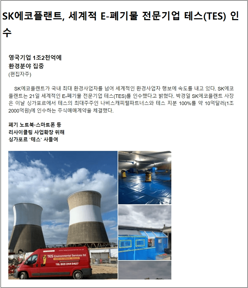 - SK에코플랜트, 세계적 E-폐기물 전문기⋯