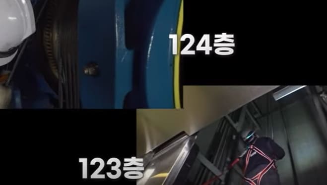 아찔한 국내 최고층 빌딩 엘리베이터 로프 교체작업 현장 영상