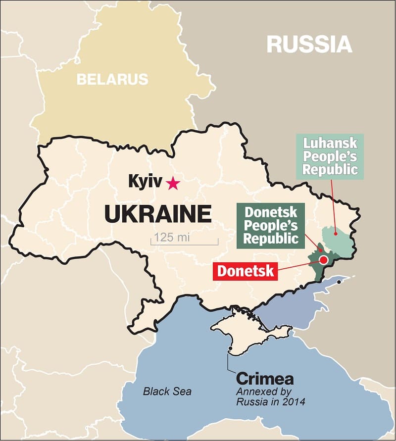 블라디미르 푸틴은 반군이 장악하고 있는 두 지역을 독립 국가로 인정한 후 러시아군에 우크라이나 동부로의 진입을 명령했다