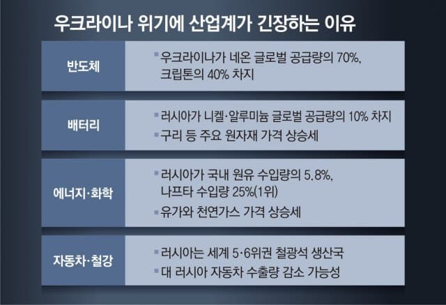 한편 우크라이나 위기 고조로 이미 유가는 연초 대비 25% 상승하는 등 각종 원자재 가격이 급등하고 있다.