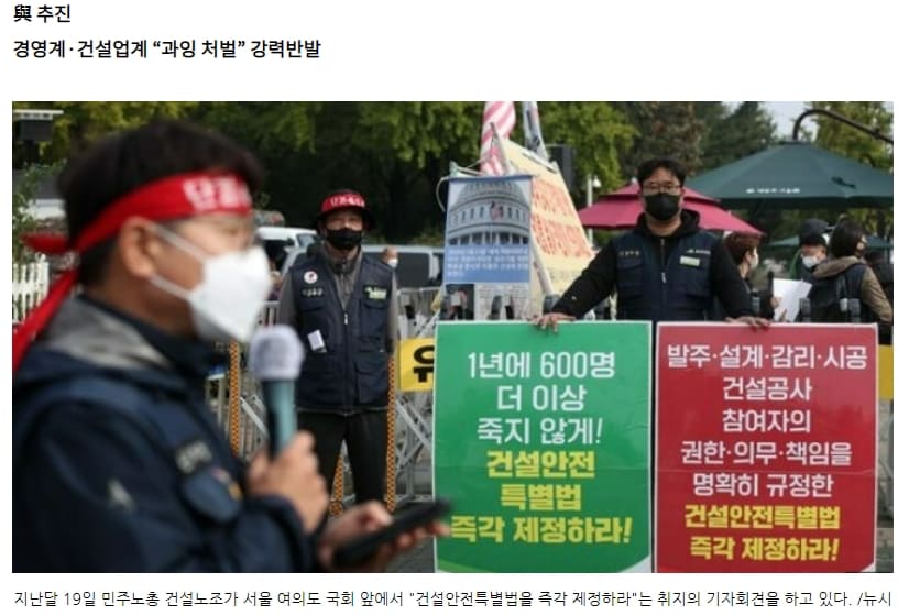 너무 한거 아냐?...사업주 처벌 중대재해법 만들어놓고, '건설안전특별법' 또 만들어