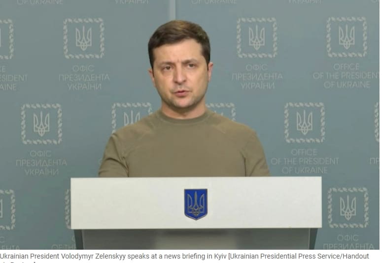 젤렌스키 우크라이나 대통령, "대통령궁에 끝까지 남을 것 VIDEO: Ukraine leader pledges to stay put as Russia troops approach Kyiv