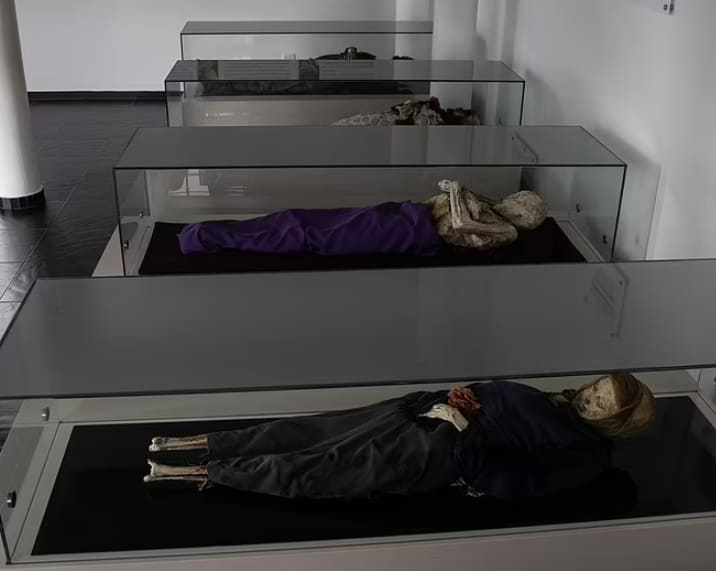 콜롬비아 수도 보고타에서 남서쪽으로 40마일 떨어진 산 베르나르도의 한 무덤에 12구 이상의 시신이 유리 상자에 담겨 전시돼 있다.