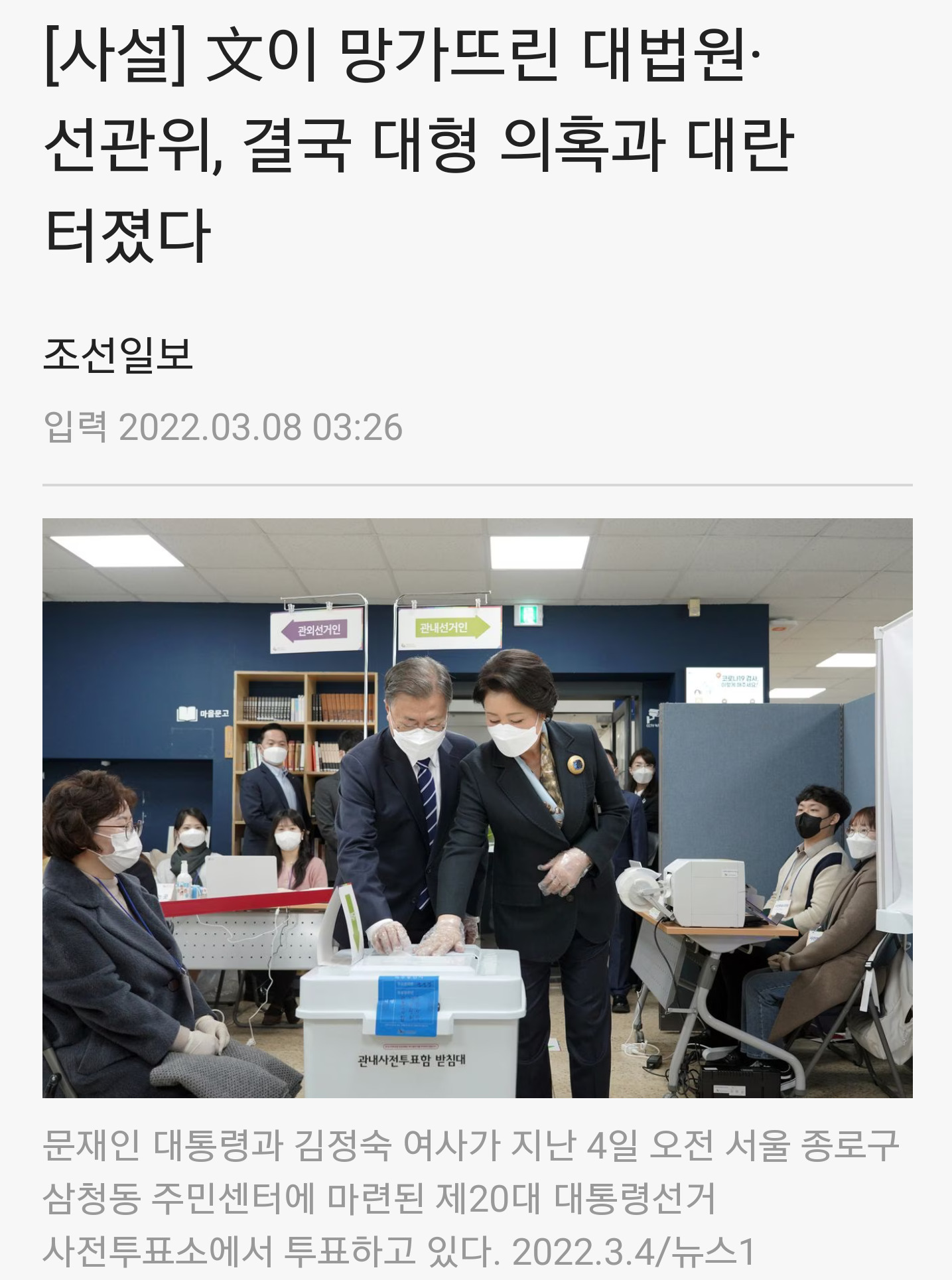 "문이 망가뜨린 대법...선관위, 결국 대란 일으켰다" 조선