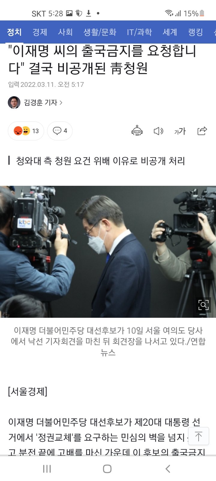 이재명 출국금지 청원 막아논 청와대