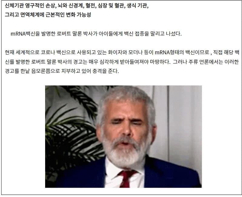 mRNA백신 발명 말론 박사,"아이에게 백신 접종하면 안돼"