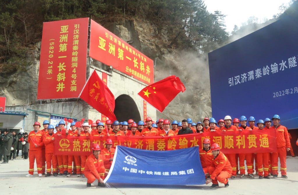 완공된 터널은 한장-웨이허 강 유역 물길을 바꾸는 건설회사를 위해 중국 중부의 도시와 농경지에 물을 공급하는 동시에 수력 발전도 하게 된다.