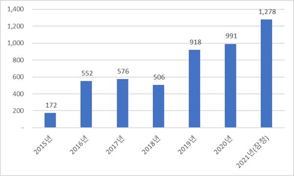 <일본 내 기능성 표시식품 연간 등록건수>(단위: 건)