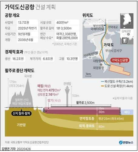 부산 지역의 숙원이던 가덕도신공항 건설사업의 밑그림이 나왔다.