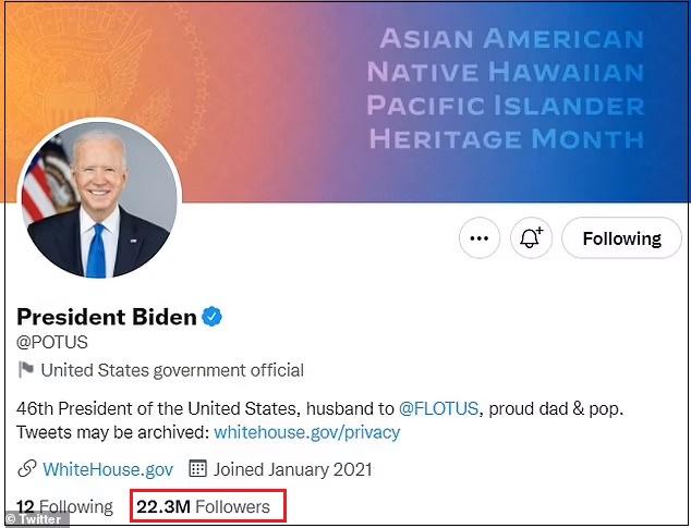 소프트웨어 업체 스파크토로(Spark Toro)가 제공한 감사 도구에 따르면 현재 조 바이든 대통령의 트위터 팔로워 2220만 명 중 절반 가까이가 가짜 계정이다.