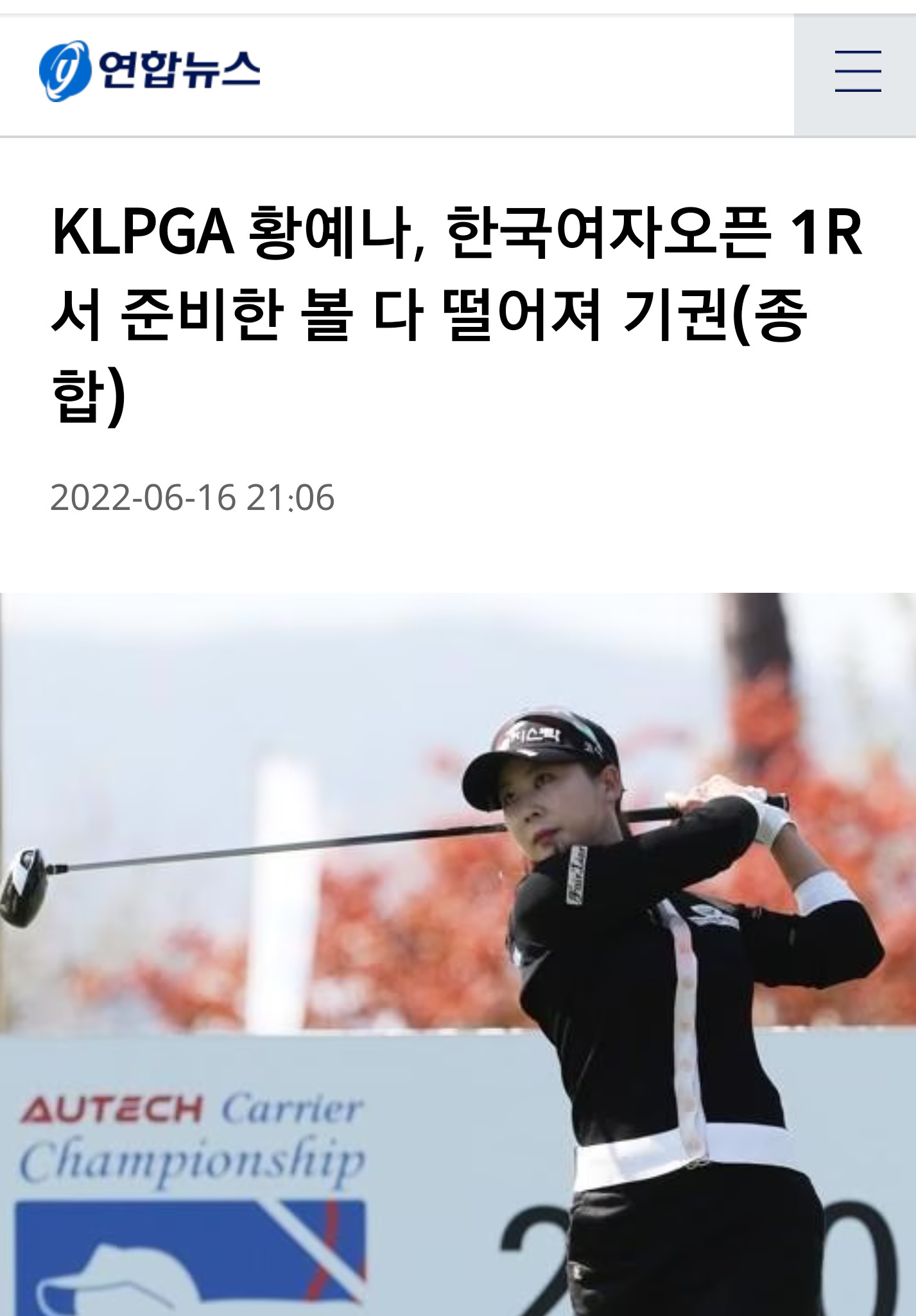 한국여자프로골프(KLPGA) 투어 메이저대회 DB그룹 한국여자오픈 1라운드에 나선 황예나(29)가 경기 도중 볼이 떨어져 기권했다.