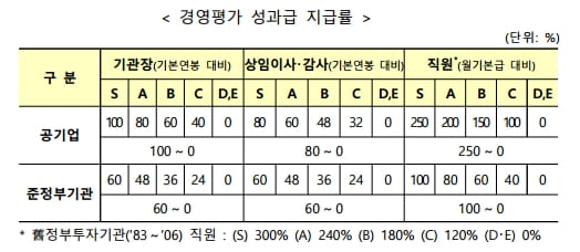 (성과급 지급) 평가 결과에 따라 경영평가 성과급을 차등 지급할 예정