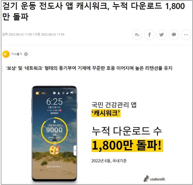 걸으면 돈 주는 앱과 퀴즈 '캐시워크(CASH WALK)'