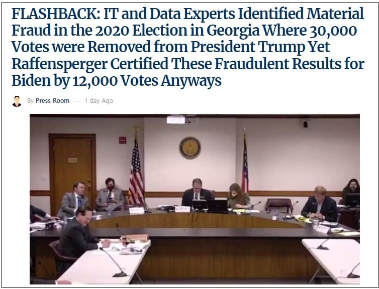 2020년 12월 30일 조지아 주 상원에서 열린 프레젠테이션을 돌아보면, 데이터 무결성 그룹 소속 데이터 전문가 그룹이 바이든 대통령이 주에서 선거를 도용하는 결과를 초래한 사기를 확인했다. 국가는 이 사기를 무시하고 어쨌든 선거를 인증했다.