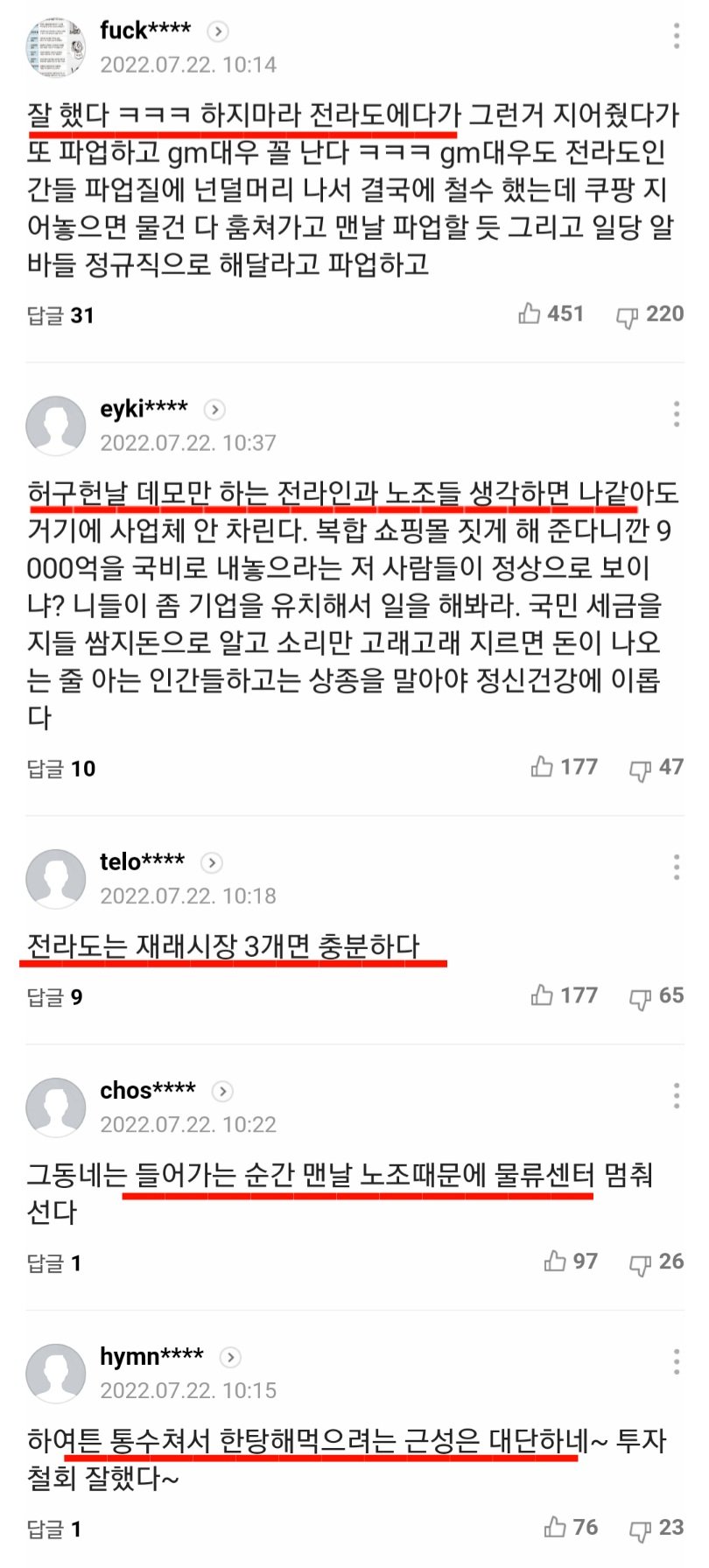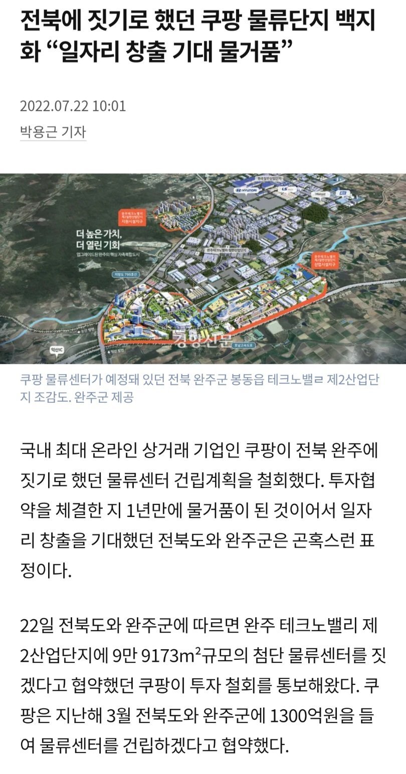 전라도 쿠팡 물류센터 건립 철회와 시민들 반응