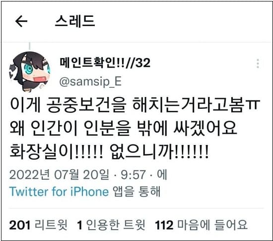시민들의 화장실에 대한 댓글