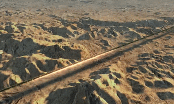 미러 라인으로 알려진 이 건축물은 해안, 산, 사막 지형을 가로질러 120km(75마일) 동안 평행하게 뻗어있는 488m(1,600피트) 높이의 유리 반사 건물 두 개로 구성될 것이다.