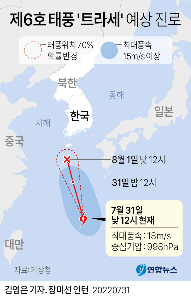 5호 송다에 이어 제6호 태풍 '트라세' 북상