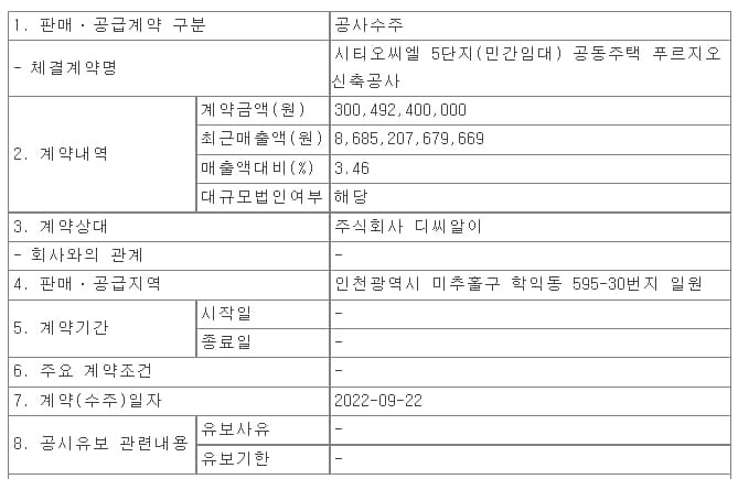 대우건설,인천 시티오씨엘 5단지 푸르지오 신축공사 ㅣ 대우산업개발, 천안 조양아파트 소규모 재건축 수주