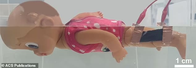 테스트하기 위해, 그 팀은 모터 달린 수영 인형에 부착했다.