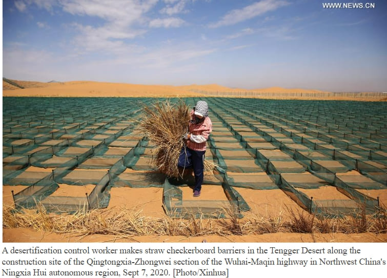| 아랍 7개국 26명이 최근 닝샤 후이족 자치주 전문가들과 함께 온라인 기술교육 과정에 참여해 땅의 사막화 방지, 초목의 퇴화 방지, 초원의 퇴화를 막는 방법을 배웠다. 닝샤 농업 임업 과학 아카데미의 임업 및 초원 생태 연구소가 주관한 이 20일간의 과정은 9월 9일부터 시작되었다. 리비아, 이집트, 요르단, 이라크, 모리타니, 튀니지, 오만 사람들이 참석했다. 닝샤 연구소의 연구원들은 이 지역의 사막화를 예방하고 통제하기 위한 경험과 방법을 공유했다. 그들은 건조하고 모래가 많은 지역의 식생 회복과 재건, 언덕이 많은 황토 지역의 수분 보유, 모래땅의 관목의 번식 및 재배, 그리고 절수 기술과 농업에서의 응용에 대해 언급했다. 참석자들은 온라인 플랫폼을 통해 닝샤 사막화 방지의 성과를 보여주는 기지들을 방문했다. 그들은 닝샤의 링우 시의 사람들이 어떻게 모래를 다루며 사막을 오아시스로 바꾸는지 배웠다. 그들은 또한 지역 사람들이 철도의 구간을 건설하기 위해 모래를 제어하는 방법을 탐구하는 방법을 배웠다. https://global.chinadaily.com.cn/a/202209/28/WS63339f8ca310fd2b29e7a229.html |
