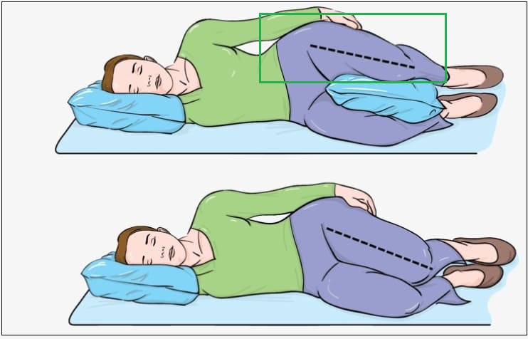 더 나은 엉덩이와 낮은 등을 지지하기 위해, 무릎이나 아랫다리 사이에 베개를 두고 잠을 자도록 해본다. 심지어 몸통 베개나 큰 베개를 껴안아 볼 수도 있다. 어떤 사람들은 이것이 더 나은 팔 지지력을 제공한다고 생각한다.
