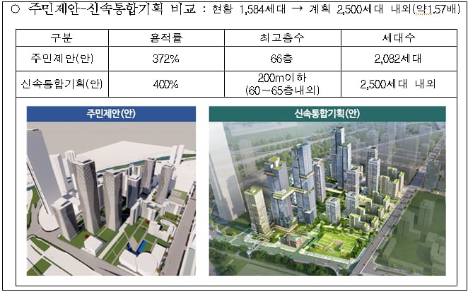 시가 이번에 확정한 ‘신속통합기획안’은 정비계획 수립을 위한 기준에 해당하며, 주민들이 신속통합기획안을 토대로 정비계획 입안 신청 후 심의를 거쳐 정비계획이 확정된다.