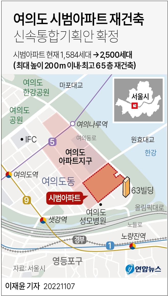기획안에 따르면 현재 1천584세대인 시범아파트는 2천500세대 규모로 재건축된다. 63빌딩과 가까운 동은 최고 65층(높이 200m 이내)까지 지어질 예정이다. 계획대로 된다면 서울 시내 재건축 단지 중에서 가장 높은 건축물이 된다.