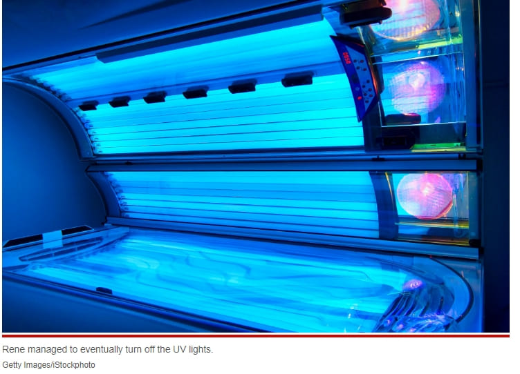 결국 소방대원 4명이 출동하고서야 르네는 태닝 기계에서 벗어날 수 있었다.